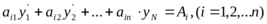 где Ук - вспомогательные переменные. Чаще всего оптимальное решение такой задачи, т.е. точка в n-мерном пространстве, является и единственным. Для существования допустимого решения необходимо (хотя и не достаточно), чтобы приведенная выше система была совместна.
