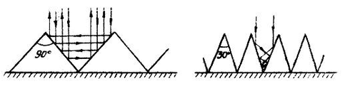 РПМ пирамидального типа является дорогим материалом, так как его производство связано с большими трудностями. В связи с необходимостью использования более дешевого листового РПМ разрабатывались сложные профили БЭК. Рассмотрим ниже принципы устройства безэховых камер.