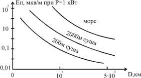 Ослабление электрического поля в зависимости от дальности и вида земной поверхности приведено на рис. 7.2.