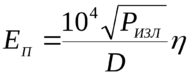 Необходимая напряженность электромагнитного поля на входе приемника задается формулой:
