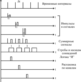 Рис. 8.2. Структура сигналов во временной области при временном уплотнении каналов