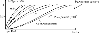 Выражения (5.4) и (5.5) получены для сигнала с известными па-раметрами и не представляют большого практического интереса, так как фаза сигнала обычно случайна. Однако, они полезны тем, что при сравнении с выражениями, которые будут получены ни-же для сигнала со случайной фазой, позволяют выявить роль слу-чайности фазы в приеме сигналов. Результаты расчетов приведе-ны на рис.5.5 для разных значений Рдоп(реш,s/0) (сплошные линии).