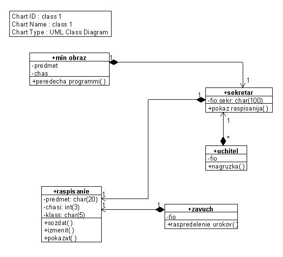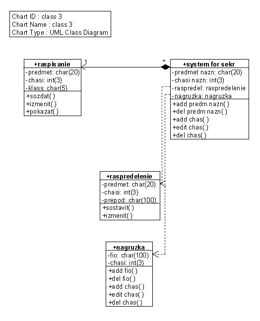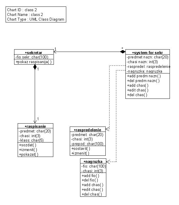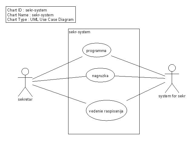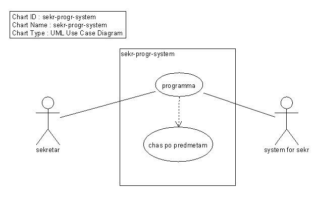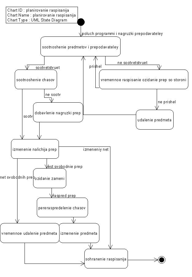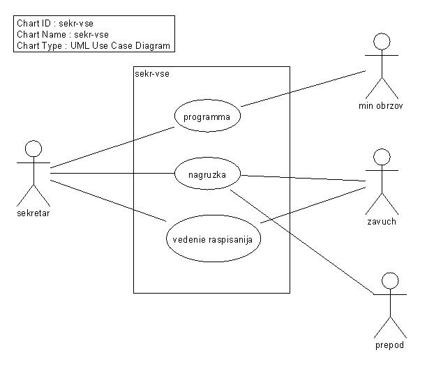 Я автоматизировал работу секретаря. Человека, который получает необходимую программу для обучения и информацию о имеющемся личном составе преподавателей. При этом он должен путем сравнения этих данных создавать и изменять расписание. Для автоматизации работы смоделировала и создала проект системы планирования расписания в соответствии с ситуацией (АИС). Эта система анализирует введенные данные и распределяет предметы из учебной программы по имеющимся в наличии преподавателей. Для визуальности этого проекта использовала UML.