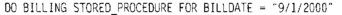 Эта строка запускает хранимую процедуру под названием BILLING со значением параметра BILLDATE, равным "9/1/2000".
