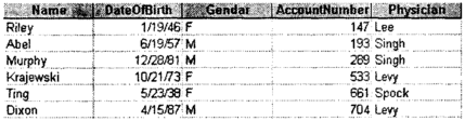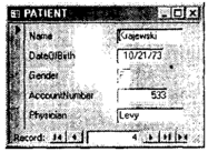 В большинстве реляционных СУБД имеются средства для создания форм. Некоторые формы генерируются автоматически при определении таблицы, другие должны создаваться разработчиком. Помощь в этом процессе может оказать интеллектуальный ассистент, присутствующий, например, в Access. Форма может иметь вид таблицы (электронной таблицы), в которой одновременно показываются несколько строк отношения. Есть и другой вид форм, где каждая строка отношения представляется отдельно. На рис. 8.4 и 8.5 приведены примеры обоих типов форм для таблицы PATIENT с рис. 8.1. Большинство продуктов обеспечивают некоторую гибкость в обработке форм и отчетов. Например, строки для обработки могут выбираться по значениям столбцов и могут быть отсортированы. Таблица па рис. 8.4 отсортирована по значению поля AccountNumber.