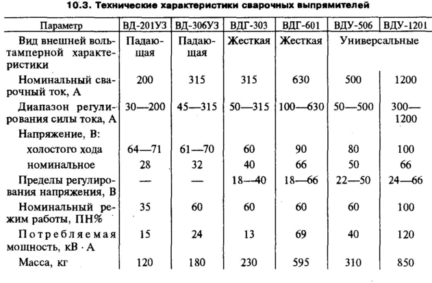При выборе сварочного выпрямителя для разных способов сварки определяют вольтамперную характеристику дуги и рассчитывают параметры режима сварки. Далее на основании технических условий эксплуатации сварочных выпрямителей и заданных элек- трических параметров сварки выбирают сварочный выпрямитель требуемой мощности и с необходимым режимом его работы (продолжительный, перемежающийся или повторно-кратковременный), устанавливают соответствие вольтамперной характеристики дуги с внешней характеристикой источника питания дуги.