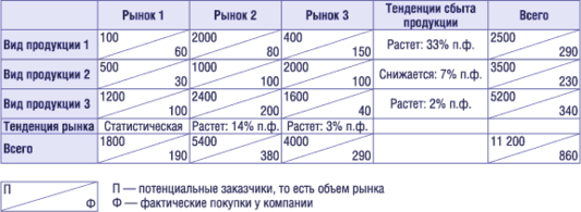 Матрица БКГ строится как для отдельных рынков, так и для суммарного рынка.