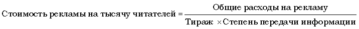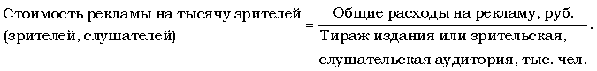 б) рекламные расходы (стоимость рекламы) в расчете на тысячу читателей рассчитываются по такой формуле: