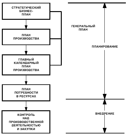 Рисунок 3. 1 иллюстрирует иерархию планирования. Первыечетыре уровня – это уровни планирования. . Результатом планов является инициирование закупки или изготовления того, что необходимо.