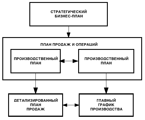 Таким образом, в течение всего года постоянно пересматривается стратегический бизнес-план и обеспечивается согласованность действий различных подразделений. На рис.3.4 изображено соотношение между стратегическим бизнес-планом и планом продаж и операций.