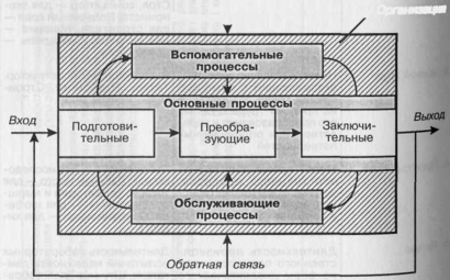 Основу деятельности предприятия составляет производственный процесс. Он складывается из ряда более мелких процессов, направленных на изготовление продукции, выполнение работ и оказание услуг. С определенной условностью их можно классифицировать на основные, вспомогательные и обслуживающие процессы (рисунок 3.1).