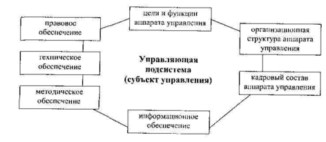 На основе указанных элементов формируется и осуществляется функционирование управляющей подсистемы (субъекта управления).