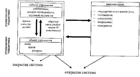 Каждая фирма как открытая система включает субъект и объект управления, а также внешнюю среду (рис. 2), которая формирует определенные условия деятельности предприятия (политические, экономические, социальные, экологические, научно-технические).