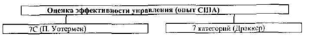 Для зарубежного опыта оценки эффективности менеджмента (в частности, США) характерны два подхода: оценка эффективности управления по принципу "7-С" Уотермена и по "7 категориям" Драккера. По существу они взаимно дополняют друг друга. Качественная оценка состояния на фирме семи составляющих управления— "7-С" дополняется количественной — по конкретным показателям (рис. 17):