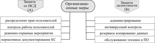 организационные (административные) меры - это меры, регламентирующие процессы функционирования КС, использование ее ресурсов, деятельность персонала, а также порядок взаимодействия пользователей с системой таким образом, чтобы в наибольшей степени затруднить или исключить возможность реализации угроз безопасности.
