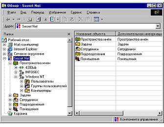 Интерфейс подсистемы управления Secret Net (рис. 45) оперирует объектами реальной предметной области «сотрудник», «задача, решаемая сотрудником», «помещение», «подразделение».