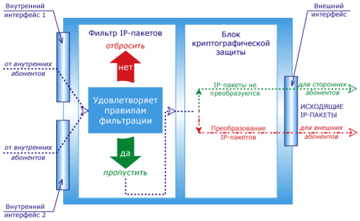 На рис. 55 приведен механизм функционирования криптошлюза комплекса "Континент-К" исходящих пакетов.
