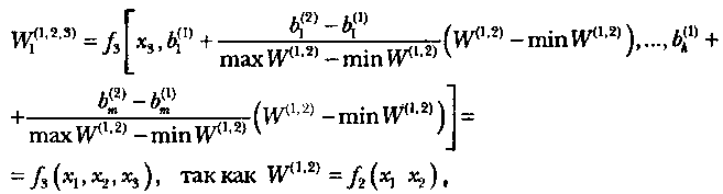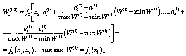 Положим, имеется гфакторов: x1, х2, ..., r. xНеобходимо оценить комплексное влияние этих факторов на выбранный показатель качества деятельности оператора W. Методика оценки состоит из r этапов. На первом этапе определяется зависимость Wot x1 [W(1) = f1(X1)] при условии, что остальные факторы находятся в диапазоне оптимальных значений. Задачей второго этапа является нахождение функции W(1,2) =f2(x1, х2, a1, ..., ak) при условии, что остальные (г- 2) фактора остаются в диапазоне оптимальных значений. Величины а1, ..., ak являются числовыми параметрами функции f2 Для нахождения этой функции сначала определяют две частные функции: