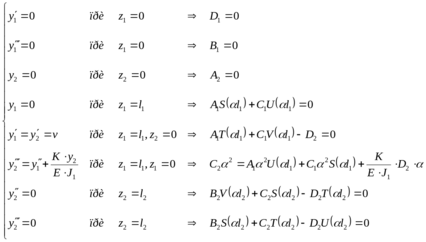 Постоянные A1, B1, C1, D1, A2, B2, C2, D2 можно найти из граничных условий:
