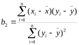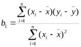 Коэффициент b1, минимизирующий сумму квадратов отклонений экспериментальных значений yi от значений, определяемых уравнением регрессии (9), называется коэффициентом регрессии Y на X и рассчитывается по формуле: