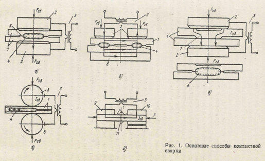 по технологическому способу получения соединений — точечная, рельефная, шовная, стыковая;