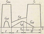 В свете изложенного наиболее рациональная циклограмма из­менения усилия и тока, характерная для точечной и частично шов­ной сварки, приведена на рис. Циклограмма усилия имеет три части I, II, III —примерные границы стадий формирования соеди­нения.
