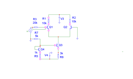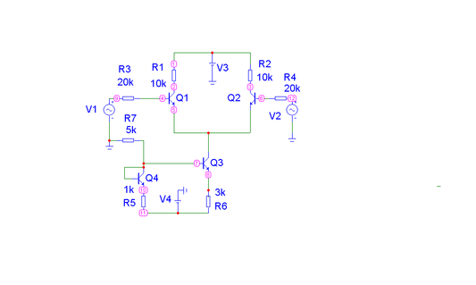 5.Поясните цель введения в дифференциальный каскад схемы токового зеркала (ТЗ). Объясните, почему при возбуждении каскада синфазными сигналами в правом плече ТЗ появляется большая величина дифференциального сопротивления между эмиттерами транзисторов- Q1,Q2 и минусом источника питания V4,-т.е. так называемый генератор стабильного тока (ГСТ)?