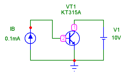 По методике, аналогичной описанной в п.1, выполните расчёт и построение проходной характеристики транзистора – зависимости IК(UБЭ) тока коллектора от напряжения между базой и эмиттером. Затем задайтесь величиной тока коллектора в рабочей точке (в интервале IК = 1-5 мА) и в режиме измерений определите управляющее напряжение UБЭ, при котором обеспечивается этот ток. В выбранной рабочей точке определите значение крутизны