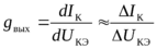 Используйте схему рис.0.2.1 для измерения выходных вольтамперных характеристик биполярных транзисторов. Выполните расчёт и построение семейства графиков выходных характеристик транзистора – зависимостей IК(UКЭ) тока коллектора от напряжения между коллектором и эмиттером при нескольких значениях тока базы. Измерение выходной проводимости gвых производится аналогично измерению крутизны транзистора согласно выражению приведенному ниже: