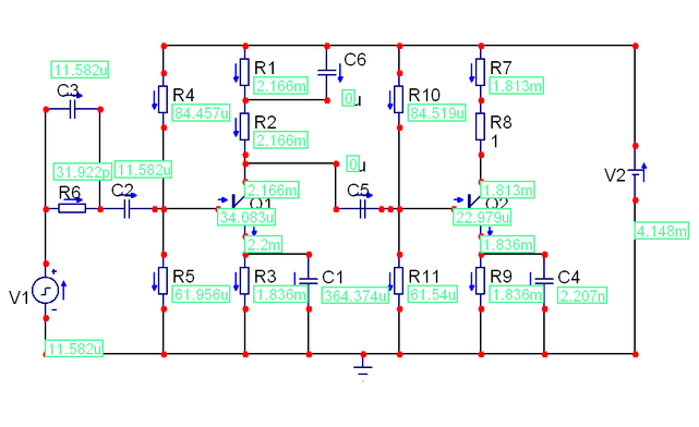 Таким образом, дифференциальные параметры транзистора Q1,Q2 в стационарной точке определены.