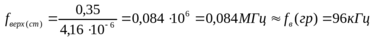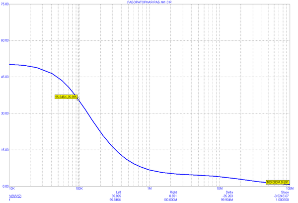 Из графика рис.8 получаем: коэффициент усиления каскада в области средних частот К0 = 0,691, а верхняя граничная частота