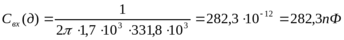 Из того же графика находим частоту, при которой модуль входного сопротивления падает в 1,4 раза. Указанная частота 331,808 кГц, следовательно входная динамическая емкость каскада будет:
