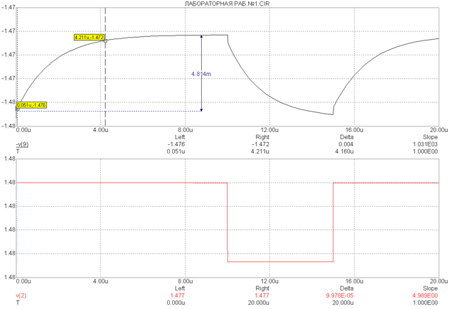 Время анализа переходного процесса установим равным немного большим временного интервала Р5, например 20 мкС.