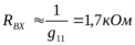 Из графика Рис.6 находим входное частотно-независимое сопротивление Rвх=1,7 кОм, обратная ему величина будет входной проводимостью g11.