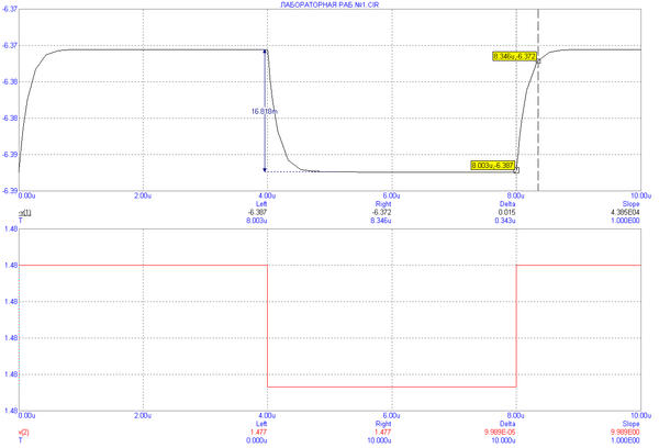 Время анализа переходного процесса установим равным немного большим временного интервала Р5, например 10 мкС.