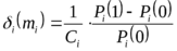 Затем с учетом табл. 5 составляем табл. 6, которую заполняем значениями δi(mi) – удельного увеличения надежности в перерасчете на единицу стоимости. Удельное увеличение надежности рассчитывается по формуле: