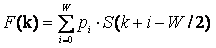 где W – ширина области усреднения, pi – весовые коэффициенты.