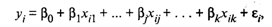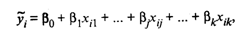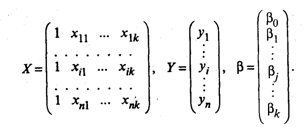 Отметим, что модель (6) справедлива для всех i = 1,2, ..., n, линейна относительно неизвестных параметров β0, β1,…, βj, …, βk и аргументов.