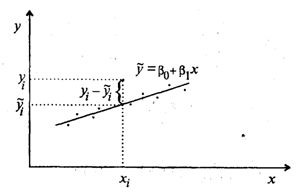 Для оценки вектора-столбца β наиболее часто используют метод наименьших квадратов, согласно которому в качестве оценки принимают вектор-столбец b, который минимизирует сумму квадратов отклонений наблюдаемых значений уi от модельных значений