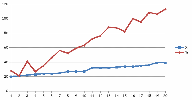 | 2 | Xi | (Xi-X!) | (Xi-X!)^2 | Yi | (Yi-Y!) | (Yi-Y!)^2 | (Xi-X!)*(Yi-Y!) |