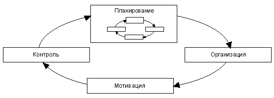 Процесс управления состоит из циклически повторяющейся во времени последовательности видов управленческой деятельности, которые получили название функций управления. Выделение функций в процессе управления может быть выполнено с различной степенью детализации. В качестве наиболее общих агрегированных функций управления обычно рассматриваются планирование, организация, мотивация и контроль (рис. 1.1).