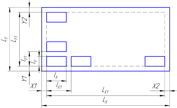 Определим габаритные размеры субблоков (LX2 – длина и LY2 – ширина):