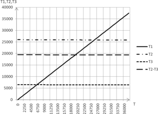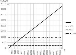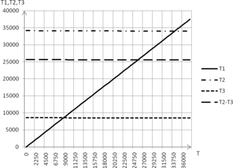 Это уравнение решаем графоаналитически (Приложение 2), путем нахождения общей точки кривых Т1 и Т2 – Т3, описываемых формулами: