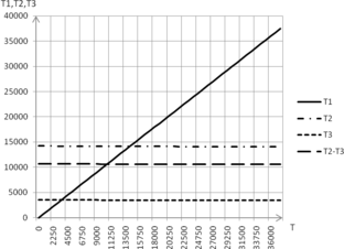 Это уравнение решаем графоаналитически (Приложение 2), путем нахождения общей точки кривых Т1 и Т2 – Т3, описываемых формулами: