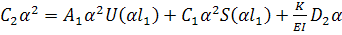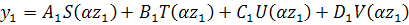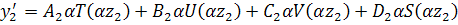 Уравнения изогнутой линии резонатора на первом и втором участках, уравнения углов поворота, кривизны и поперечных сил запишем в виде: