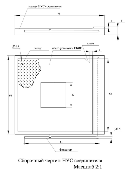 Условие монтажа в конструктивном модуле более высокого уровня является разъемный принцип установки. В следствии того, что наш МКМ имеет большое количество контактов, для этих целей уместно применить разъемный соединитель с нулевым усилием сочленения (НУС соединитель). Он позволяет без усилия вставить МКМ, при этом обеспечивает надежное фиксирование МКМ в разъеме, после применения фиксатора.