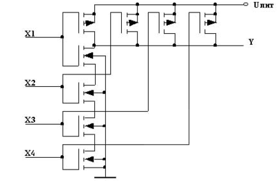 Рис. 1. Принципиальная схема 4-х входового элемента И-НЕ