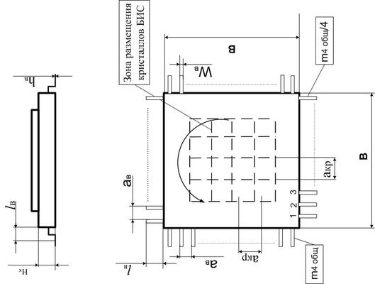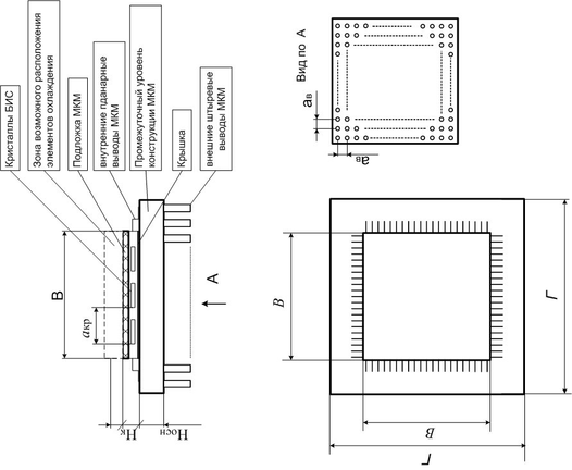 Рис. 3а. Общий вид конструкции МКМ с планарными (а) и штыревыми (б) выводами