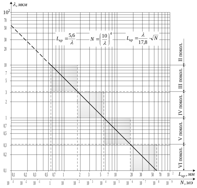 Рис. 1. Взаимосвязь поколений, степени интеграции (N), размеров кристалла (Lкр) и уровня полупроводниковой технологии (длины канала транзистора – ) в конструкциях микросхем.