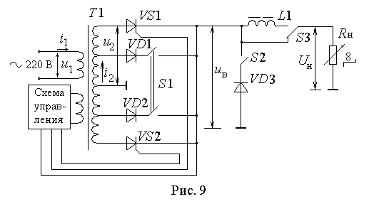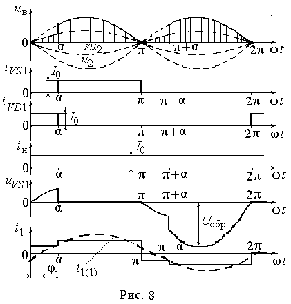 = 0,55(kф2/S + kф1)P0. Временные диаграммы для рассматриваемой схемы при резистивно - индуктивном характере нагрузки приведены на рис. 8.